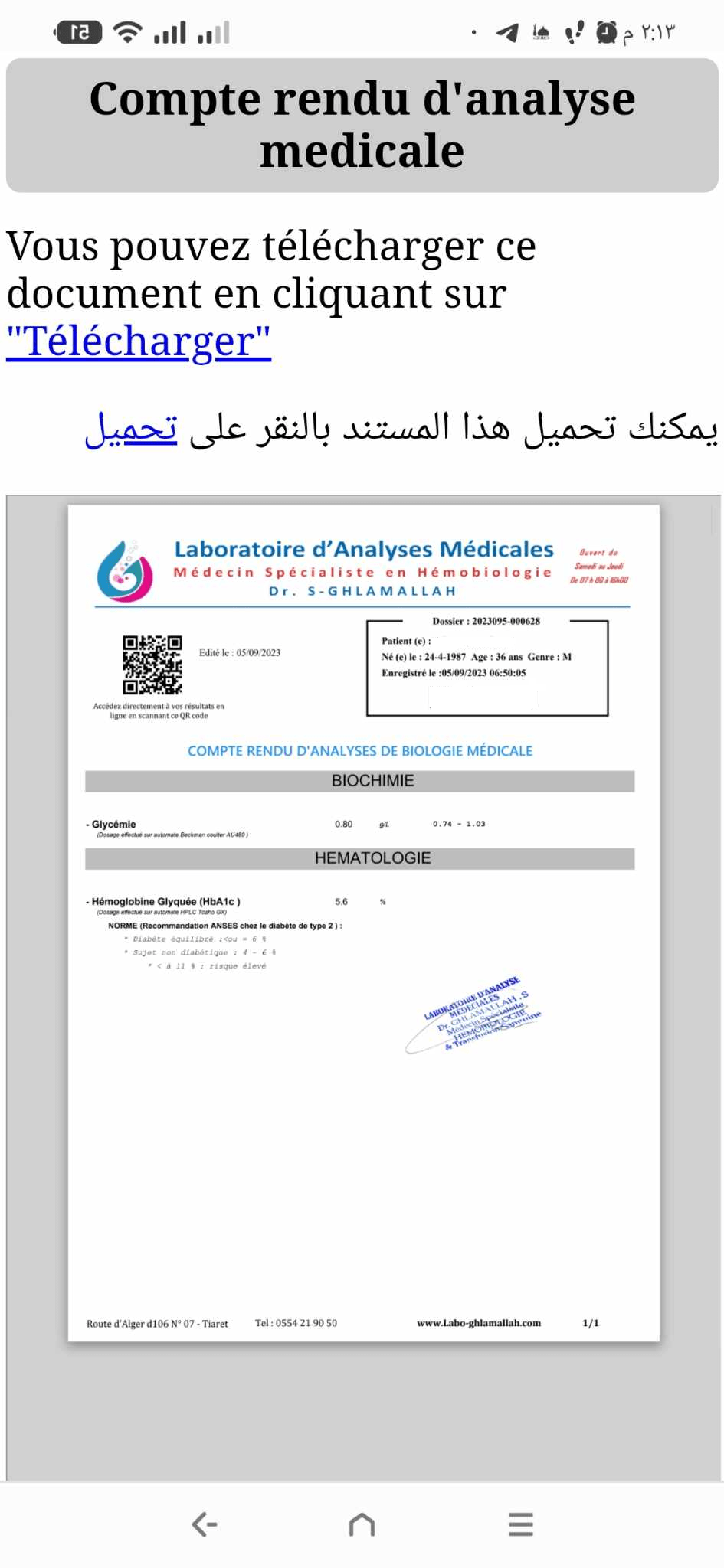 يمكن للنريض الاطلاع على نتائج التحليل وطبعها من مقع المخبر على النت
